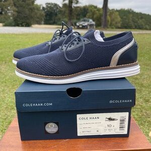 Like new in box Cole Haan OG Meridian Oxford sneakers in Navy Knit. Lightweight, breathable knit upper with cushioned sole for all-day comfort. Lace-up closure, sporty yet polished silhouette.