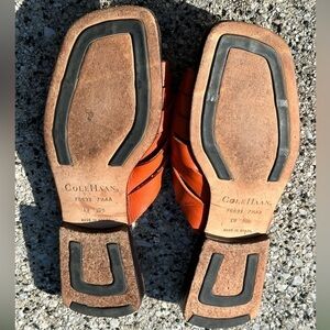 Cole Haan Orange Square Toe Leather Knot Slides Open Toe 3/4” Heel Narrow 7.5AA