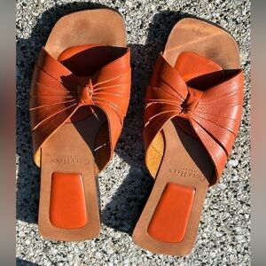 Cole Haan Resort Orange Square Toe Leather Knot Slides Open Toe 3/4 Heel Sandals Flats
