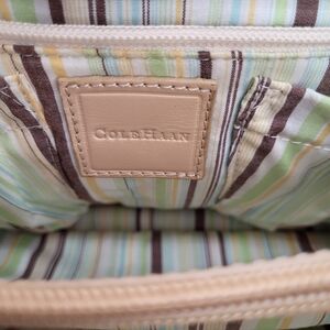 Cole Haan bag with tons of storage compartments inside. One small blemish on inside zippered pocket, see picture for reference. No other marks or blemishes that I could see.