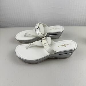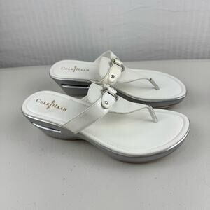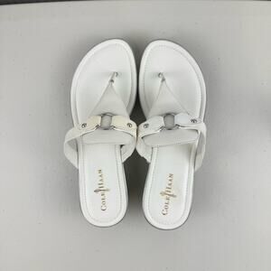 Cole Haan Original Grand Wedge Nike Air White Leather Sandals Women's Size 9.5B Flip Flop Thongs