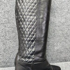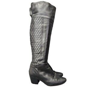 Cole Haan Over the Knee Boots Black Size 8.5 B Inside Zip Block Heel Quilted