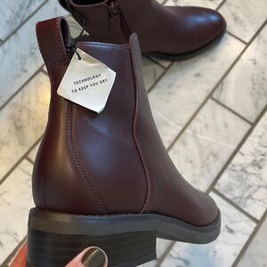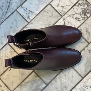 NWT leather chelsea boot from Cole Haan in perfect condition. Waterproof! Gorgeous wine/burgundy/oxblood color.