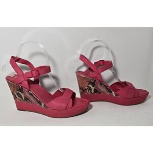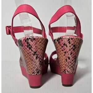 * Cole Haan Paley Sz 9.5 Punch Pink Leather Snake Print Snakeskin Wedge Heels