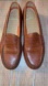 Elegant tan leather slip-ons by Cole Haan. Perfect for versatile styling.