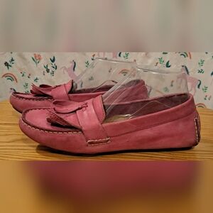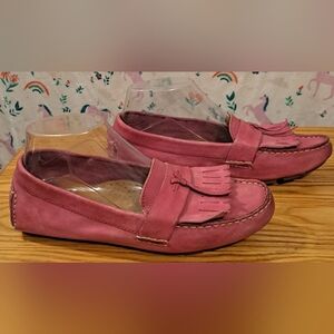 Cole Haan Pink Suede Preppy Boho Casual Neutral Loafer Shoe w/ Tassels SZ 7B