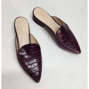 Cole Haan Piper Burgundy Croc-Embossed Leather Mules Block Heel Slip-On Womens