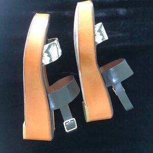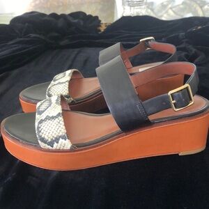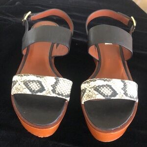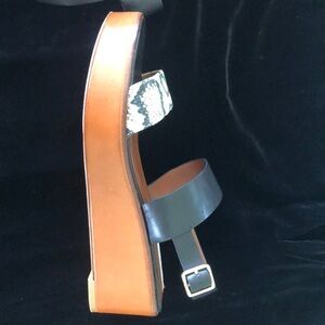 Like new, only worn a few times, Cole Haan sandal. All material is leather except for the toe strap which is snake print fabric.