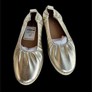 Cole Haan Platinum Gold Leather Espadrille Flats Size 9B Grand 360 New With Tags