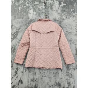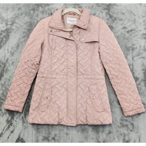 Cole Haan Quilted Jacket Coat Size S Pink Drawstring Waist Zip Snap Lined Warm