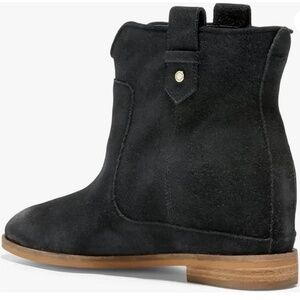 Cole Haan Rayna Wedge Booties Black Almond Toe Suede Leather Ankle Boots 7.5
