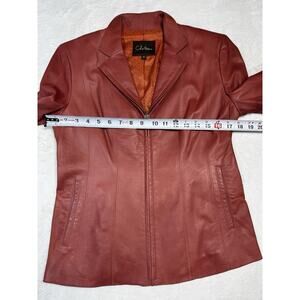 Cole Haan Red Clay Lambskin Full Zip Jacket Sz 8 Front Tailored Moto Blazer
