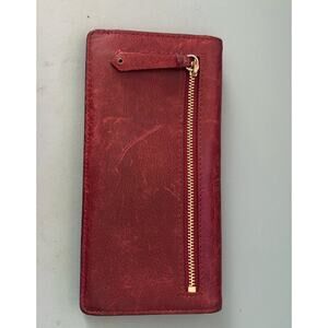 Red leather cole haan wallet with 8 card slots. Very soft leather. 2 large zippered pockets.