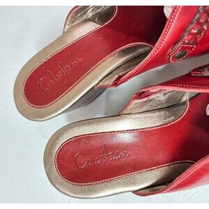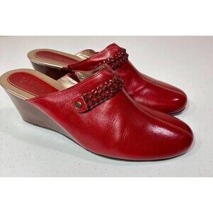 Features: Cole Haan Women's Cherry Red Leather Wedge Shoes. Clogs / Mules Style. Braid detail.