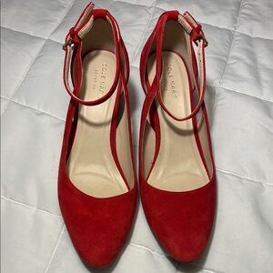 Cole Haan Red Suede (Leather) Lacey Wedge Heels