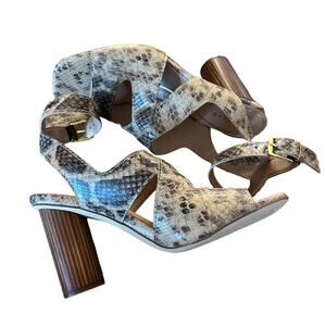 Cole Haan Reina City Sandals Leather Snake Print Ankle Strap Heels NEW Size 10