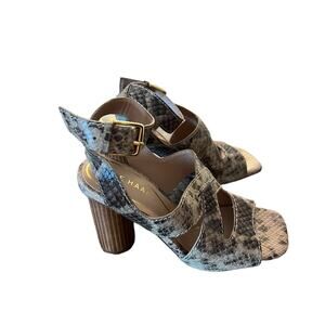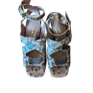 Cole Haan Reina City Sandals Leather Snake Print Ankle Strap Heels NEW Size 5