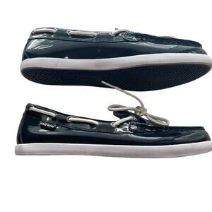 These loafers are ideal for buyers seeking deck-ready polish with upscale comfort—perfect for resort wear, yacht club styling, or capsule wardrobe versatility. The navy patent finish and white laces add a crisp, elevated touch. Great for sneakers, boat shoes, country club, upscale, deck shoes, vacation, nautical, resort wear, yacht club. So pretty!