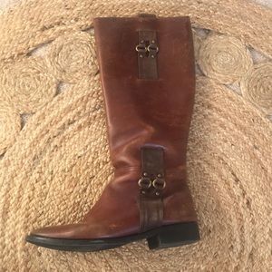 Perfectly broken in Cole Haan riding boots. Amazing quality. High quality leather. Brass & Leather details, many years left in these!