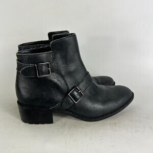Cole Haan Rooney Short Boots Women's 8 Black Leather Comfort Buckle Strap D42552