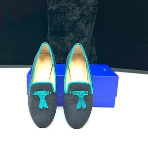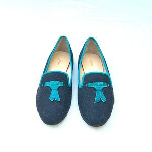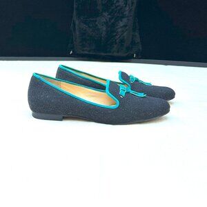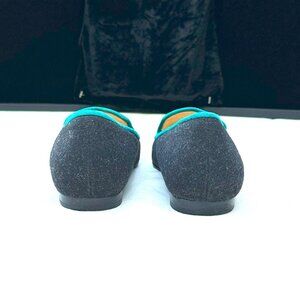 Cole Haan Sabrina Women's Charcoal Felt Driving Loafers With Teal Suede Accents