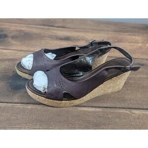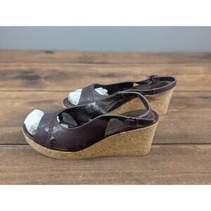 Cole Haan Sandals 26230 Plum 9 Dark Brown Wedge Peep Toe Cork Heel Italian Chic