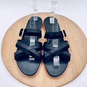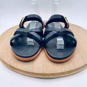 Cole Haan Sandals Womens 8.5 Black Leather Strappy Flats Quite Luxury