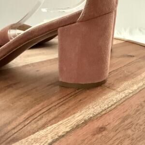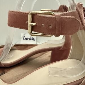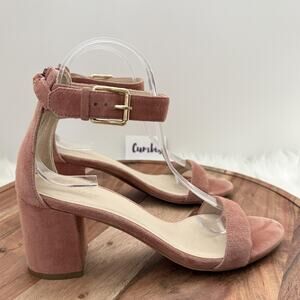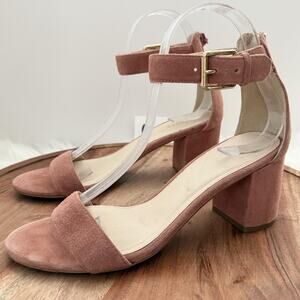 Cole Haan Sandals Womens Size 7.5 B Pink Suede Block Heel Ankle Strap Zip W10264