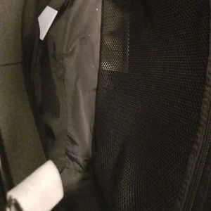 Brand new backpack. Purchased for my son (whose name is Sawyer) for school, but he was not impressed and won't use it. Black with faint camo print. Metal clasp. Front zip pocket. Inside with zipper compartment. Key holder. Water bottle holder. Foam covers still on inside zippers. 16" long, 17" high, 5" width. Very well made.