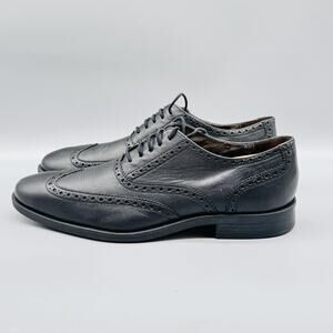 Cole Haan Shoes Men 9 Black Leather Wingtip Oxford Brogue Slip On Lace Up Dress