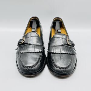 Cole Haan Shoes Mens 10 Black Leather Kiltie Fringe Loafers Buckle Slip On Dress