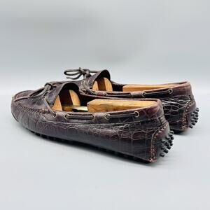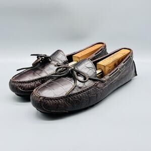 Cole Haan Shoes Mens 10 Brown Leather Driving Moc Loafers Croc Embossed Slip On