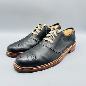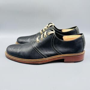 Cole Haan Shoes Mens 10 Dark Blue Leather Brogue Cap Toe Saddle Perforated Dress