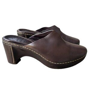 Cole Haan Shoes Mules Women's Size 8B Brown Leather Split Front Block Heel