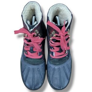 Cole Haan Shoes Size 8.5 Cole Haan Air Rhone Quilted Navy Plaid Waterproof Boots Men's Shoes Men's Boots Men's Cole Haan Boots Lined Sherpa Lined Boots Blue With Multicolor Plaid And Red Laces