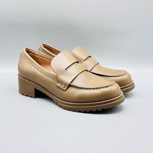 Cole Haan Shoes Womens 9 Tan Leather Loafers Lug Sole Chunky Heel Camea NEW