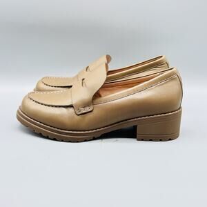 Cole Haan Shoes Womens 9 Tan Leather Loafers Lug Sole Chunky Heel CameaNEW