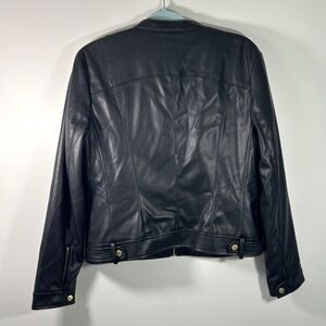 Cole Haan Signature Black Faux Leather Cafe Racer Moto Jacket L PRISTINE