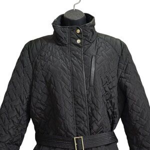 Cole Haan Signature Black Quilted Belted Long Coat Sz XL