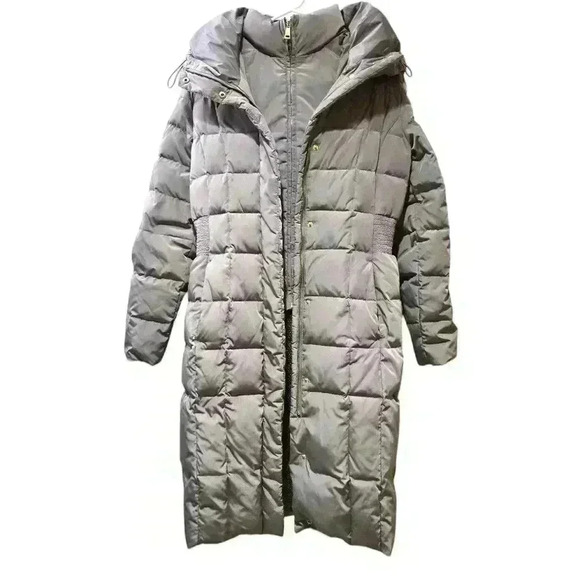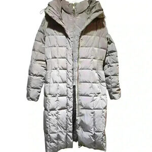 Cole Haan Signature light Gray Hooded Taffeta Down Quilted Long Puffer Jacket Coat