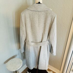 Cole Haan Signature Slick Wool Blend Wrap Shawl Collar Coat, Gray, Size 12, NWT