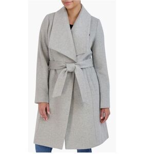 Cole Haan Signature Slick Wool Blend Wrap Shawl Collar Coat, Gray, Size 14, NWT