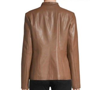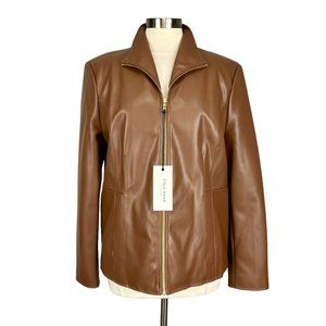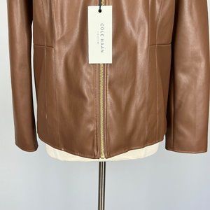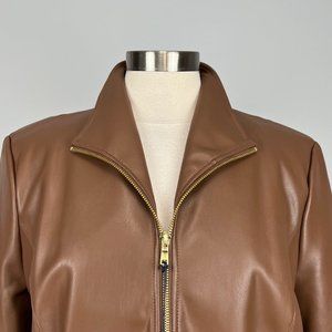 Cole Haan Signature Womens Faux Leather Jacket Zip Hazelnut Brown Vegan size XL