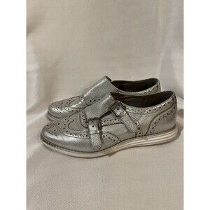 Cole Haan Silver Metallic Buckle Wingtip Leather Comfort Loafer Women Size 6