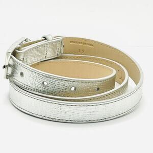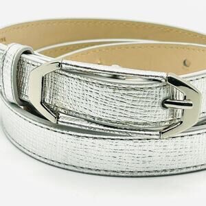 Cole Haan Silver Metallic Textured Leather Chic Skinny Belt