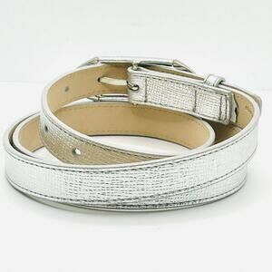 Excellent condition. Genuine leather with silver metallic textured finish. Polished modern buckle closure.