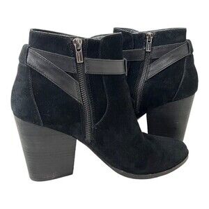 Cole Haan Size 10 Black Minna Ankle Bootie W00491 Side Zip Buckle Strap Suede