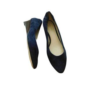 Cole Haan Size 6.5B Navy Blue Ballet Style Suede Low Wedge Heels Shoes