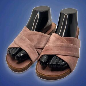 Cole Haan Size 8.5B Braelyn Pink Flat Suede Cross Band Slide Sandals W14778