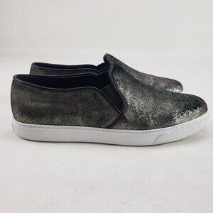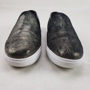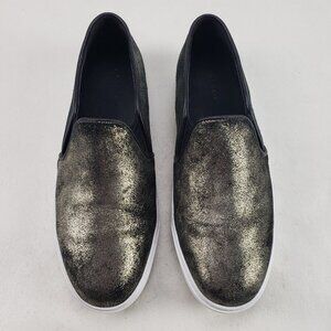 Cole Haan Slip On Sneaker Womens 8.5 B Black Gold Leather Flat Casual Shoe